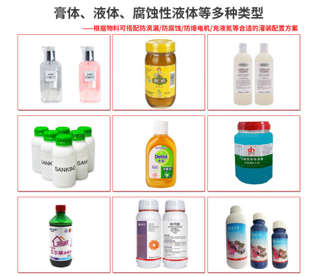 全自动单头极速灌装机采用由转子泵传送物料,伺服定量灌装的原理,进瓶、输送、定位、灌装、出瓶均由PLC自动控制.广泛适用于化妆品、视频、医药、日化等行业。适用物料于各种膏霜、乳膏、面霜、药膏、洗衣液、洗发水、沐浴露、半流体、蜂蜜以及各种粘稠体的物料的灌装设备。